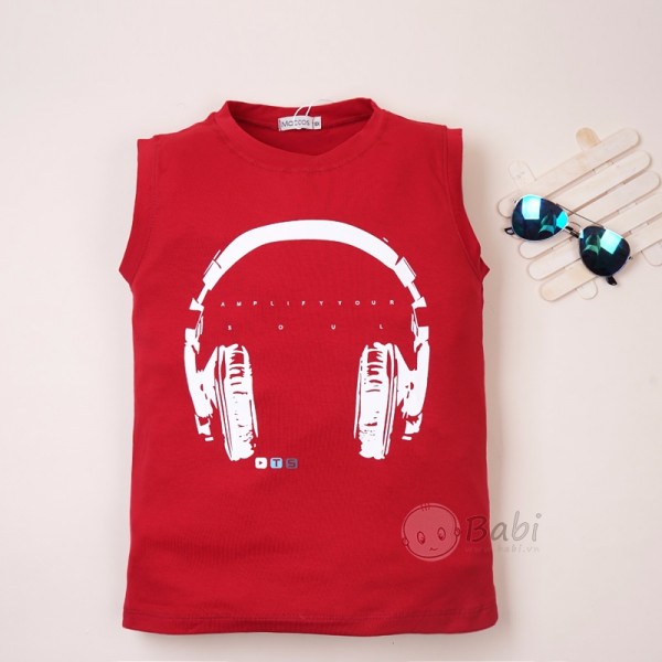 Kết hợp áo thun sát nách in hình tai nghe với quần baggy là gợi ý hoàn hảo cho bé những buổi đi chơi giải ngoại hay đi công viên đấy nhé Mẹ!